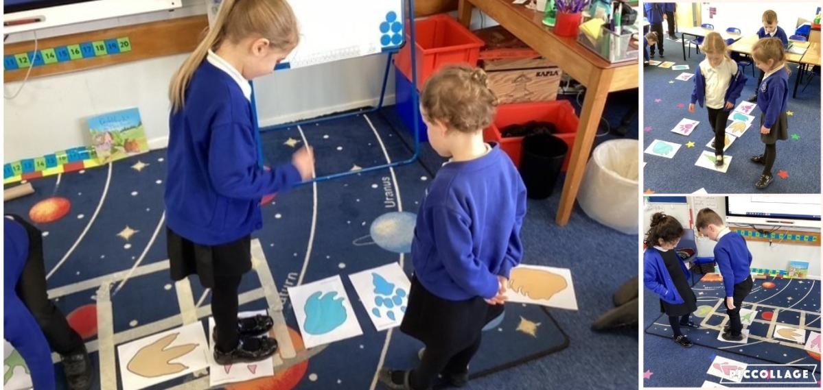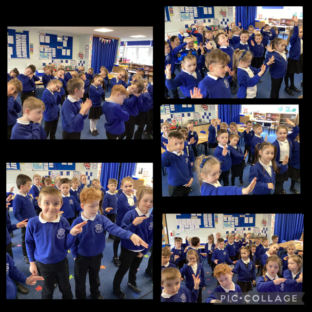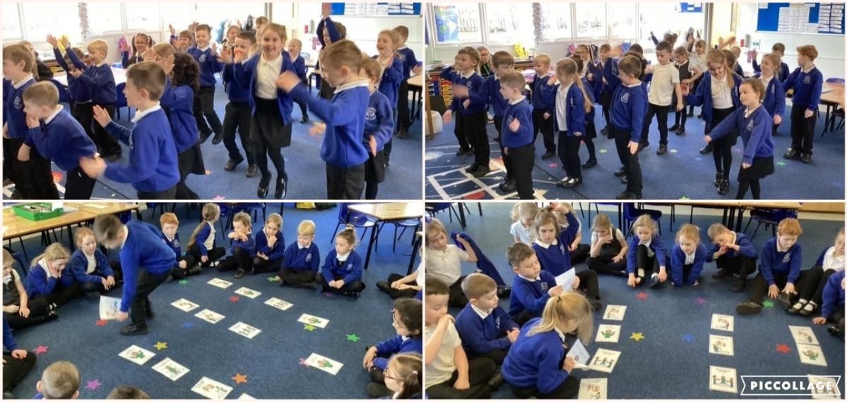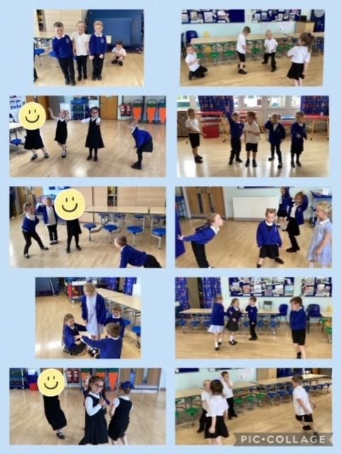 We have been learning to repeat shapes and patterns, we learned the 'Hokey Cokey' and have also had a go at the 'Cha Cha Slide' dance which has helped us to follow the leader’s movements, and to know how to change direction!