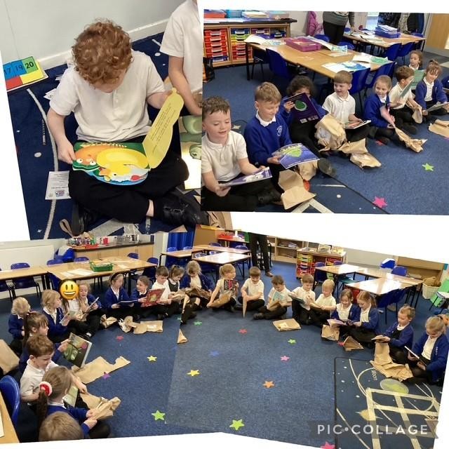 Year 3 came to read with us this afternoon for World Book Day. We loved having the older children hear our new reading skills! We were also very lucky to have one of our governors, Mrs Michel, read us a story. What a brilliant day!!