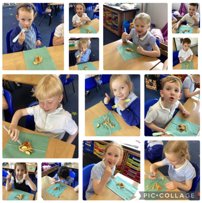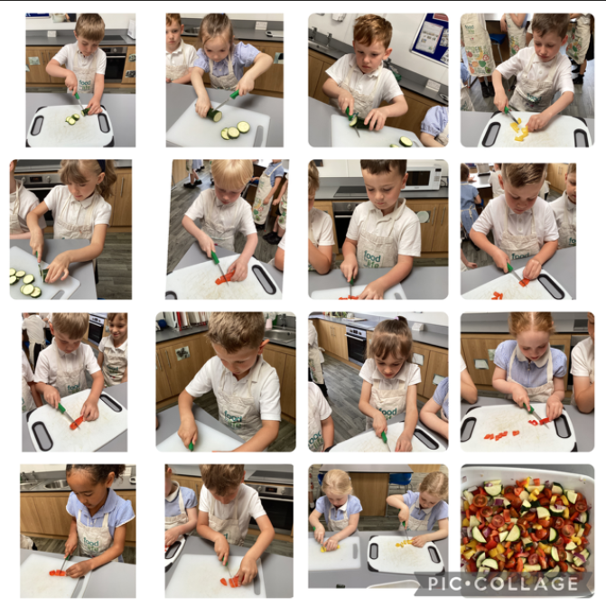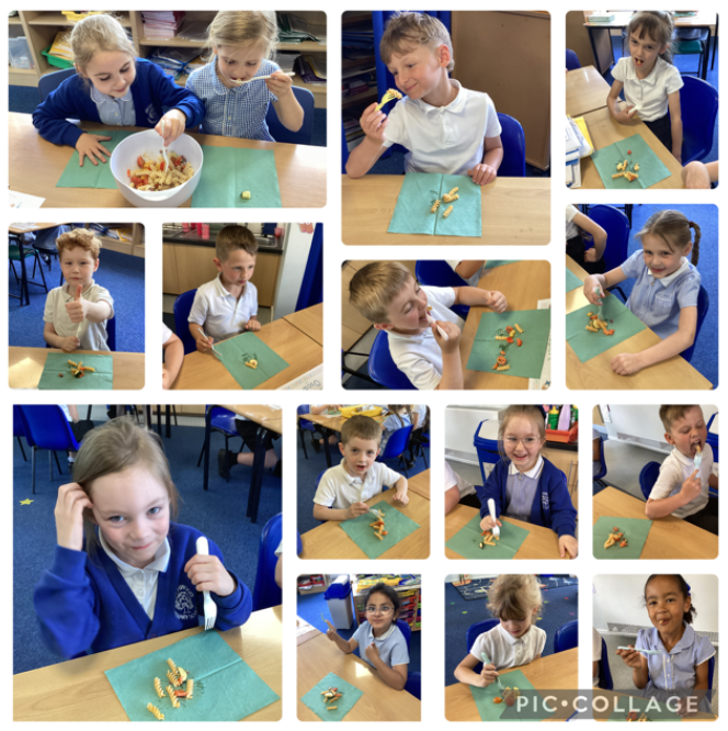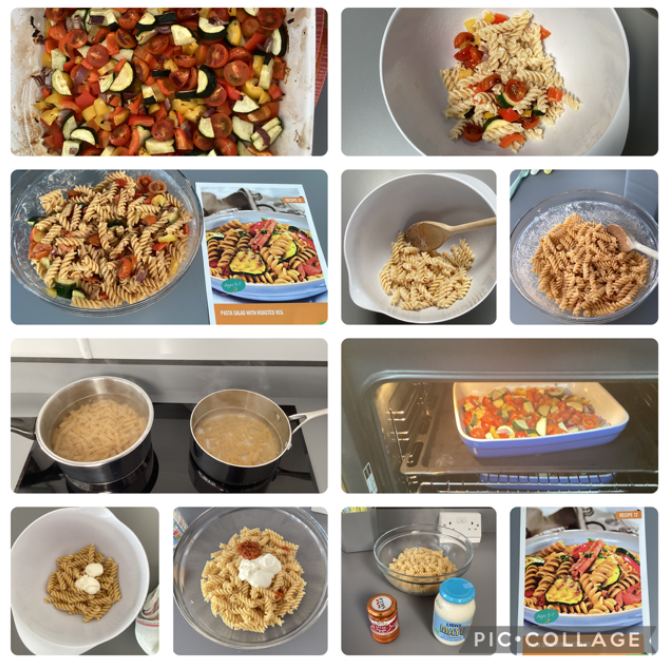 In the last week before half term, our class got busy in the kitchen making a delicious roasted pasta salad. We practised safe cutting skills using the bridge and claw techniques to chop our vegetables, then added garlic and oil before roasting them in the oven. While they cooked, we boiled the pasta and let it cool. Once everything was ready, we mixed the roasted vegetables with the pasta, added a little mayonnaise and pesto, and gave it a good stir. Everyone tried the final dish — and there wasn’t a plate left with food on it! A tasty end to the half term and a great chance to build our cooking confidence.