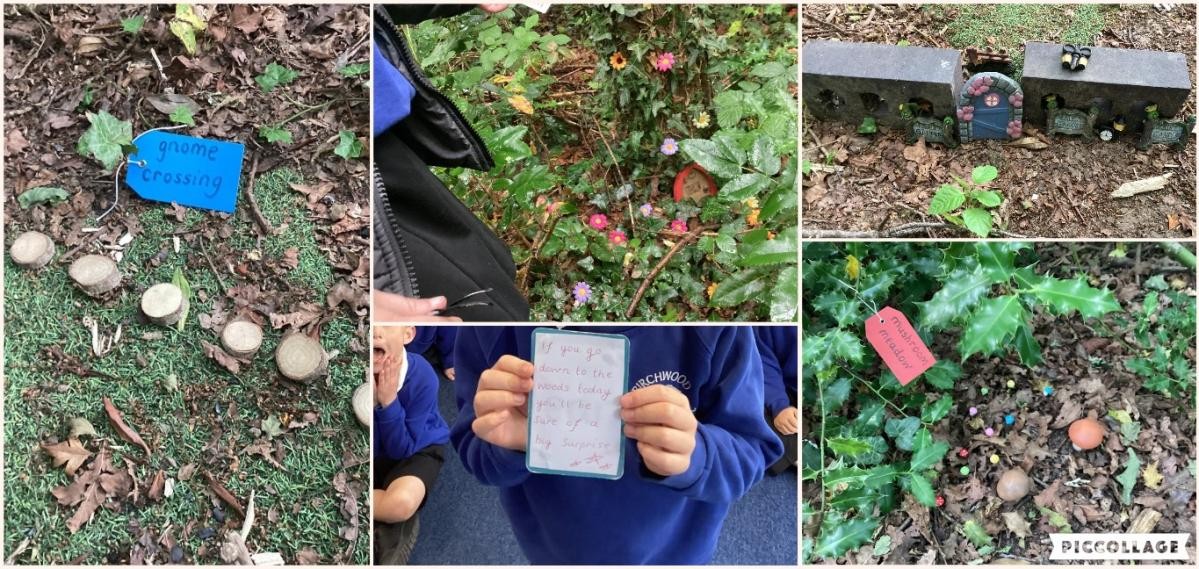 Imagine our surprise when we came across a strange note in the middle of our phoneme cards. 'If you go down to the woods today you’ll be sure of a big surprise!' After finishing our phonics lesson, we put on our coats and went to investigate.