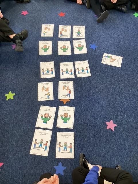 We started our Computing lesson by singing the Hokey Cokey. We discussed how this was an algorithm as we had to follow clear and precise instructions. After practising the song, we used some pictures to represent the different actions. Together we put these in the correct order to create a ‘Hokey Cokey algorithm’.