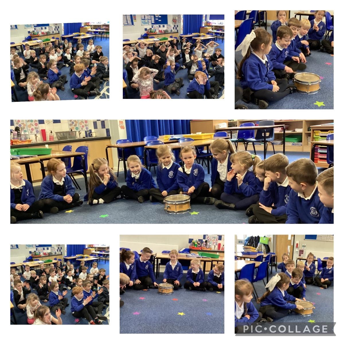 This week we have used a drum to tap out the syllables in our names. We have also been learning a football echo song and we have been using instruments to tap along to the beat!