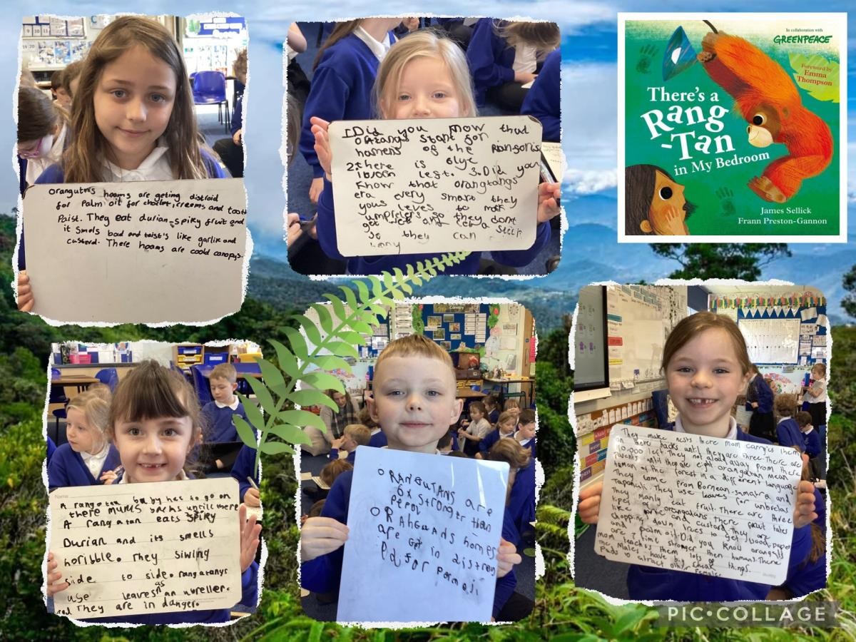 To immerse ourselves in our new text ‘There’s a Rangtan in My Bedroom’, Year 2 have been discovering incredible facts about orangutans – and what we’ve learned has truly touched our hearts. These magnificent creatures are in danger, and their homes in the rainforests are being destroyed at an alarming rate.