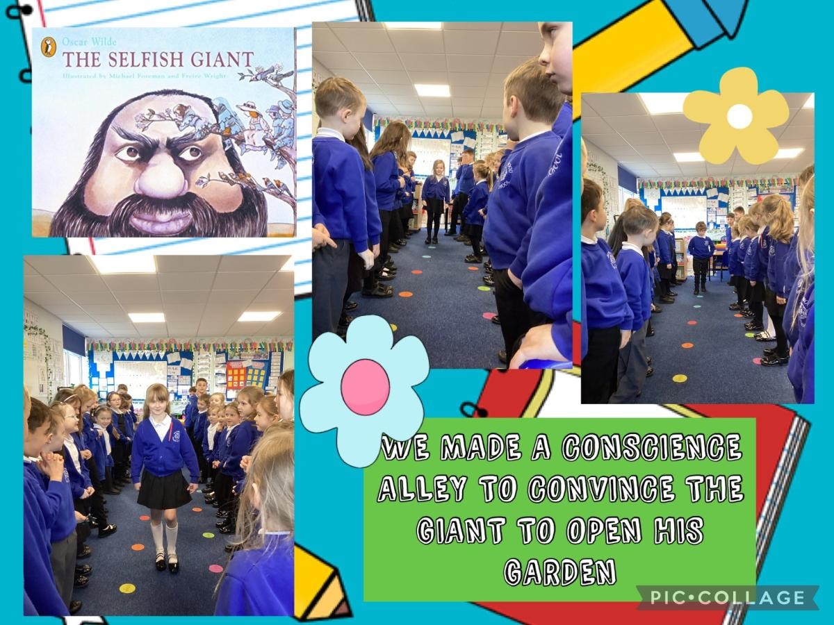 Year 2 children have been fully immersing themselves in The Selfish Giant by Oscar Wilde! We created a “Conscience Alley” where children took turns convincing the Giant to open up his garden again.